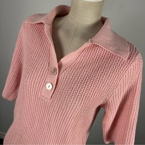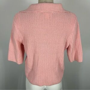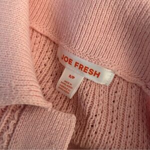 Cozy knit sweater by Joe Fresh. Features a soft pink hue and collared design. Ideal for layering. In good used condition