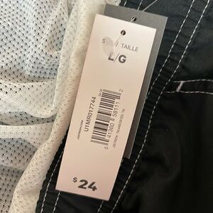 Swim trunks with elastic waist and functional drawstring. New with tags.