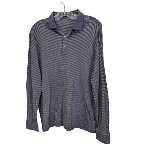 JoeOne Men XL Long Sleeve Polo Shirt Button Wrist Gray Stripe Cotton Lightweight