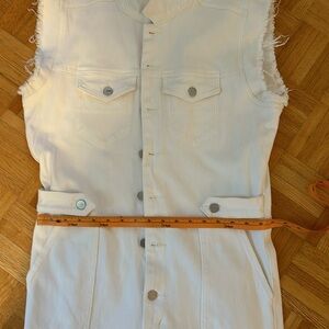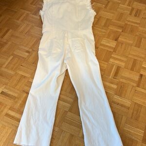 Chic and stylish, this white sleeveless denim jumpsuit is perfect for any casual outing. Its sleek design offers both comfort and fashion. Stretching, Please zoom in all photos, I checked every ml, No return after purchasing, Please let me know if you need more pictures , EUC