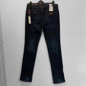 The cigarette in Zoan s a medium dark blue denim with a slim, straight leg with a classic mid rise. Featuring flat whiskers and hand-sanding for a casual-yet-sophisticated look.