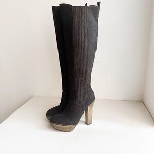 Joe's Deep Dark Brown Nubuck Suede High Heel Boots 7.5