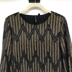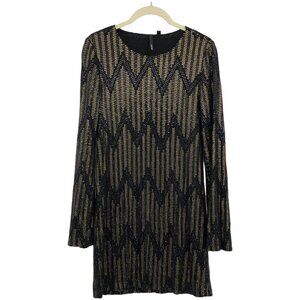 Joe's Jeans Black & Gold Yves Sequin Chevron Long Sleeve Mini Dress size XS