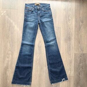 Joe's Jeans Sophia Icon Flare Wide Leg Denim Jeans Blue Mid Rise Raw Hem