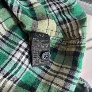 Condition: Excellent gently used condition. Fabric shows normal wash & wear. Otherwise very clean & minimally worn. Lightweight soft cotton, grey in color with green plaid lining, can be seen minimally through grey material.