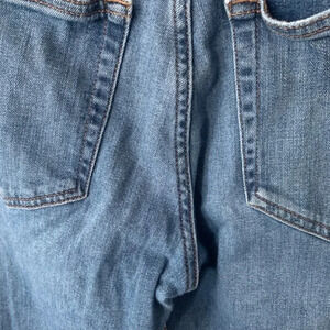 The Style name is Niki Boyfriend in the wash shade Paramount. Five pocket cropped/ankle style jeans are a mid to high-rise relaxed style and are done in a light to medium faded blue denim wash.