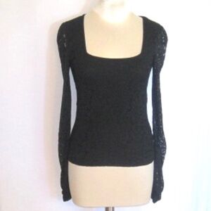 Joe's Jeans Talia lace top. Color: Jet Black. SIZE: M (armpit to armpit measures 14.75") . The Talia lace top is detailed with sheer puffed sleeves in a fitted silhouette. Features: