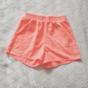 A unique neon coral Bermuda sporty short with elastic waist. Vintage style.