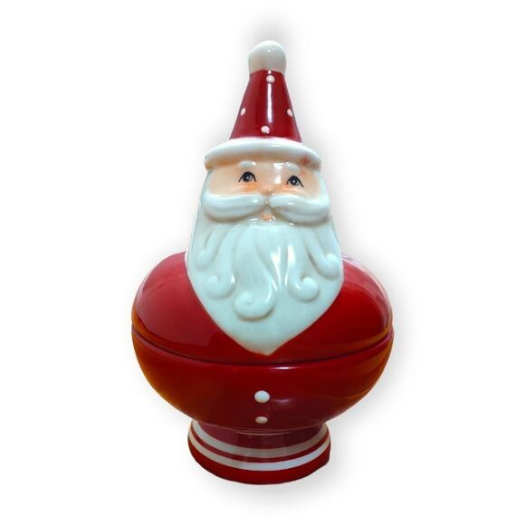 Super Cute Johanna Parker Nostalgic Santa Candy Dish Canister, Hand painted. NWT Pairs well with Rae Dunn.