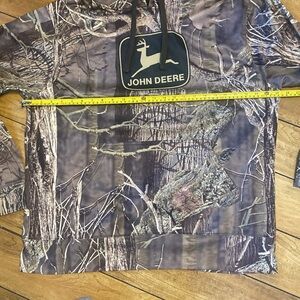 Stylish John Deere hoodie with a camouflage pattern. Features a drawstring hood and front logo patch. Perfect for outdoor enthusiasts.