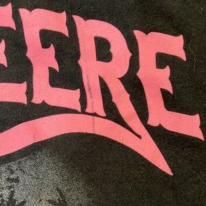 Stylish John Deere kids' t-shirt in black with a vibrant pink logo. Perfect for casual wear.