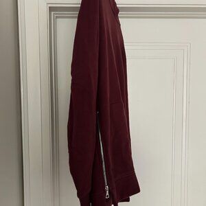 Slim-fit hoodie with vertical zippers along the sides, revealing a hidden kangaroo pocket.