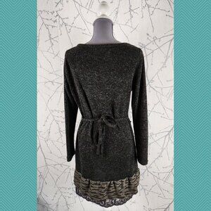 John Fashion Wool Blend Textured Floral Applique Midi Dress