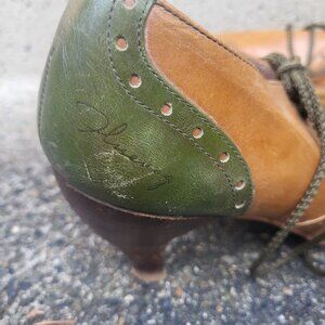 John Fleuvog Leather Lace ups Heels Size 8.5 Vintage Green and Brown Shoes
