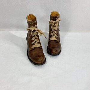 John Fluevog Adriana Nuni Combat style Boots Distressed Brown Lace up Ankle