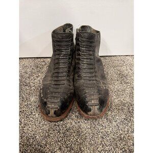 John Fluevog ‘BABETTE’ Leather Faux Lace Inside Zip Ankle Boots Women US 11