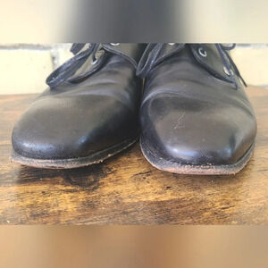 Elegant black leather shoes with lace-up design. Features a sturdy block heel. Perfect for formal occasions.