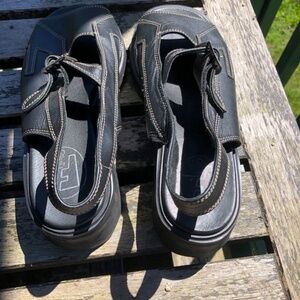 These are great and tough sandals. These classics never go out of style. These fit between 7-7.5 so it seems the size mark of 5.5 is unisex sizing. See pics for exact condition. Rarely worn.