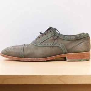 John Fluevog Brandenburg 9 Green Perforated Cap-Toe Oxford Gateways Leather Sole