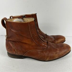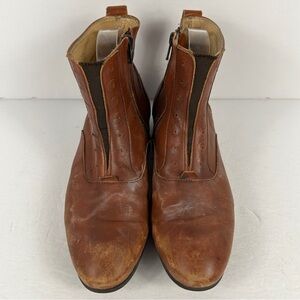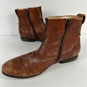 Rich brown leather ankle boots. Unique design with lace-up front. Ideal for stylish outings.