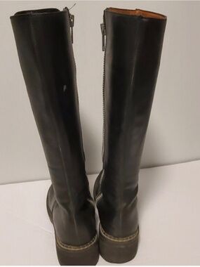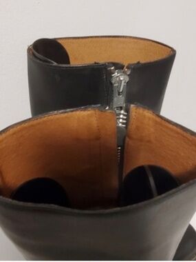 John Fluevog, Cece boots. Cece is a slim looking knee high boot with a metal zipper on the inside. Wearable on so many occasions, it's comfortable and classic. Leather uppers, linings and foot sock with a low rubber F-sole for wear and tear.