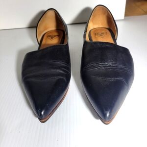 John Fluevog History Marina Pointed Toe D'Orsay Leather Flat Black size 7