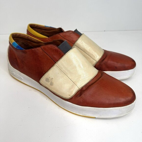 John Fluevog Kickback Moving Sneakers Shoes Mens Size 13 Orange Leather Casual