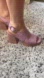 Chic lavender heels with chunky platform. Features wide straps and adjustable buckle.