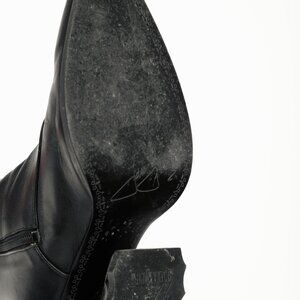 Made in Portugal, these Lu boots from John Fluevog's Deliverance collection are crafted in a smooth Black nappa leather, and feature painted Rococo mid-heels, closed pointed toes, silver studs, inner side zip closures, leather lining, and tunite soles.