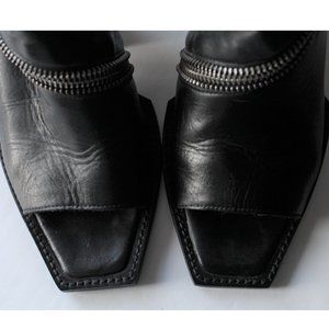 John Fluevog NYC City Spiral Open Toe Zip-Up Bootie / Size 6 / Black