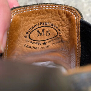 Size is labelled M5, but they came from a woman and Fluevog does not sell men’s size 5, so I believe they are women’s 5. The bottom measures 8.5” long