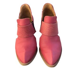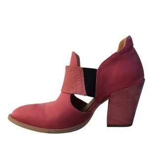 Chic pink leather heels. Unique cut-out design. Comfortable block heel.