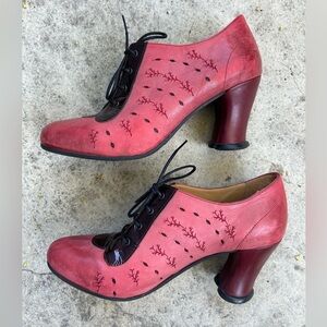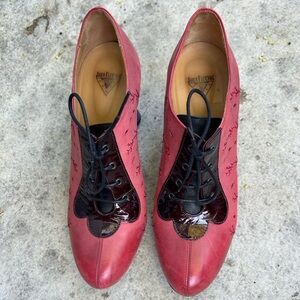 John Fluevog Red Look Out Fascination lace up leather heel, BNWOB, size 9