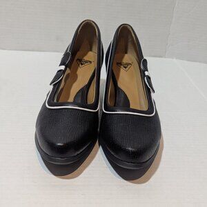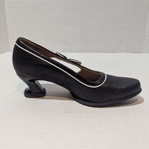 John Fluevog Sole Talk Black white Anodea Heels Side Bow 10 New And Unworn