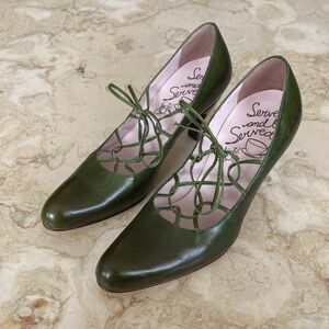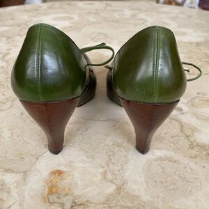 John Fluevog Teapots Darjeeling Leather Pumps Heels Olive Green