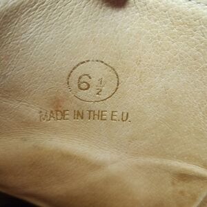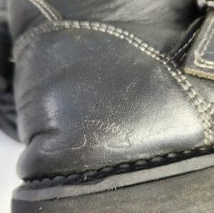 Vintage 1990s, thick 'The Seventh Heaven' Havea Tree latex soles, white contrast stitching, leather insoles, "resists alkalai water, acid, fatigue, Satan", GVC, light distressing, lower buckles are quite worn (only noticeable when unbuckled), Ladies Size 6.5, fit more like a roomy Size 7, Hight-10", Length(inside)-9.5".