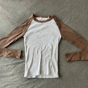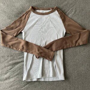 John Galt/Brandy Melville Pale Blue and Brown Long Sleeve Ribbed Shirt