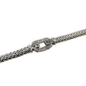 John Hardy Sterling Silver And Black Topaz Kali Tennis Bracelet features a single sterling silver link with clusters Of Blue Topaz And Iolite. The decoration size Is 14.6x31.6mm. The length is 8 inches with classic box clasp closure.