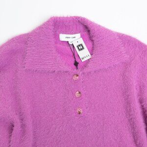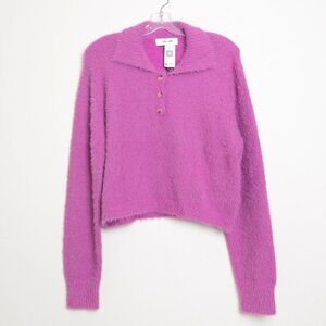 John + Jenn Clarke Polo Knit Sweater Fuzzy Petal Pink Boxy Cropped