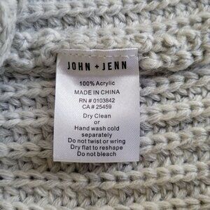 The John + Jenn chunky grey turtleneck sweaterdress offers warmth and style for winter lounging. Made from 100% acrylic, this size L dress features a neutral hue for versatile wear.