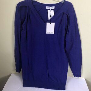 John + Jenn NEW Crew Neck Open Shoulder Cut Out Sweater Tunic Top Soft Knit