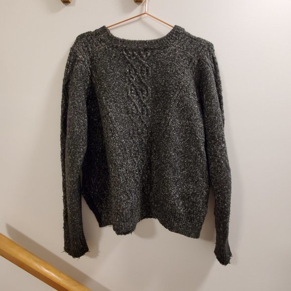Warm, cozy sweater. Worn quite a bit but still has lots of life left in it. Some yellowing on the tag.