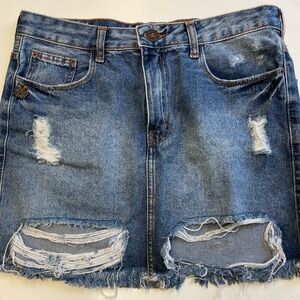 John John distressed 90s inspired 100%cotton denim jean skirt women's size Small