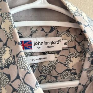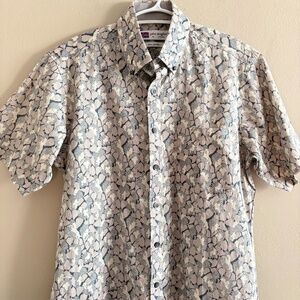 John Langford 100% Cotton Gray Abstract Short Sleeve Button Down