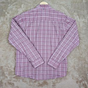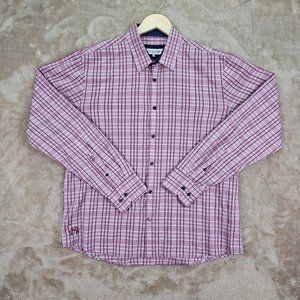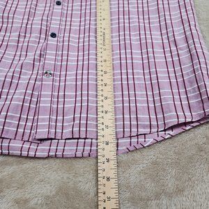 John Lennon Button-Down Oxford Shirt Pink Plaid Embroidered Long Sleeve Men's XL