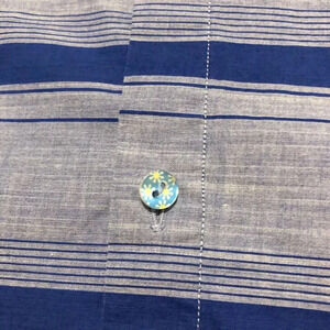 The shirt is pre-owned but in good used condition. It has some loose threads and creases to it. Please see all photos for exact shirt.