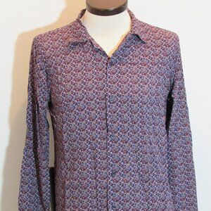 John Lennon Purple Geometric Print Camp Collar 100% Viscose Lightweight Shirt M