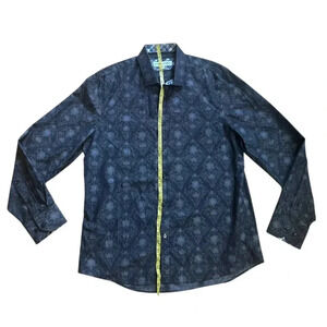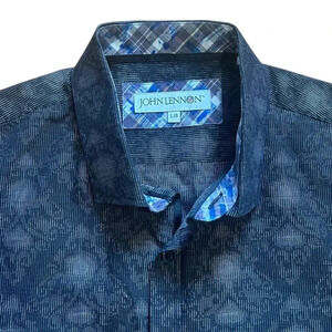 John Lennon Shirt Mens L Black Floral Long Sleeve Button Up