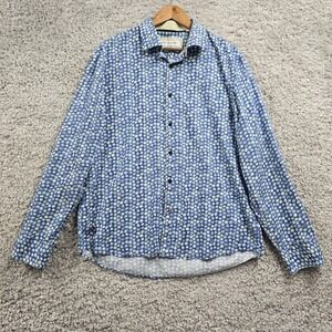 John Lennon Shirt Mens XL Blue Button Up Long Sleeve Flip Cuff Flowers