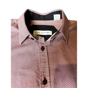 John Lennon by English Laundry Burgundy Button Down Dress Shirt Size M. Classic Burgundy Allover Print. Casual to formal wear. Crisp Collar.